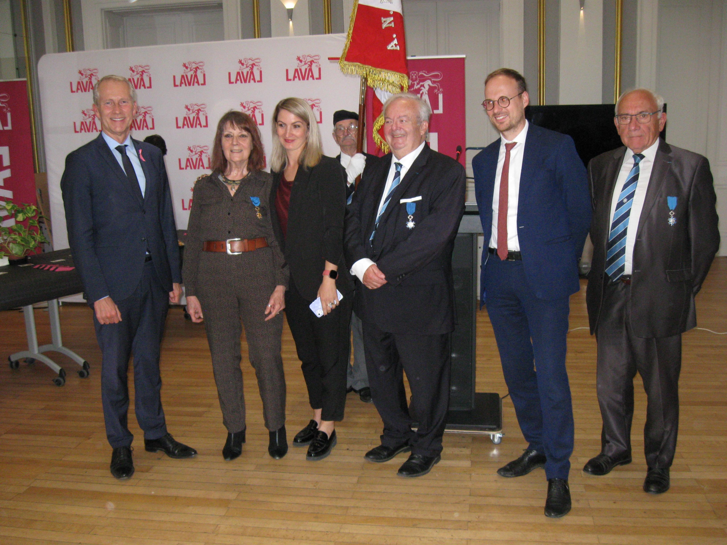 Remise de la médaille d'officier de l'ONM à Madame laurette Auduit. En présence du député Guillaume Garot et de Florian Bercaut le maire de Laval.